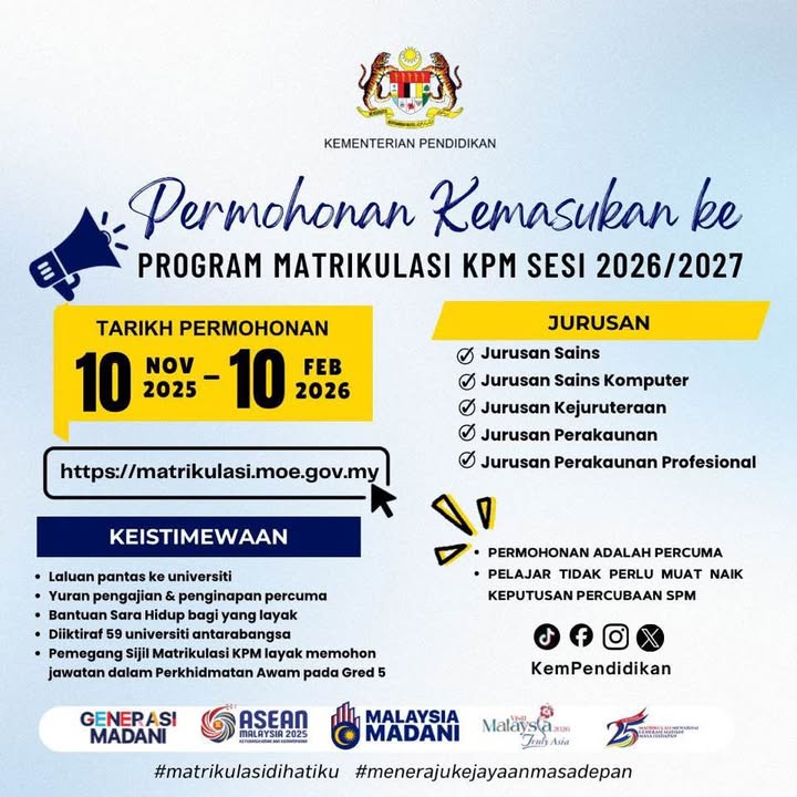*permohonan Kemasukan Ke Program Matrikulasi Kpm Dibuka Mulai